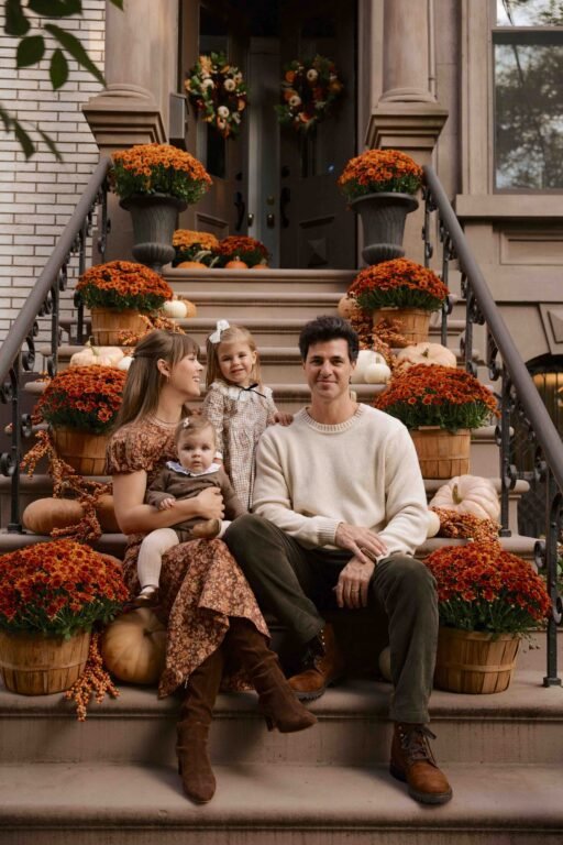 Before picking outfits, think about where your photos will be taken. Will you be wandering through a rustic pumpkin patch? Strolling under trees glowing with red and yellow leaves? Or maybe gathering in front of your home’s stoop with its seasonal décor?